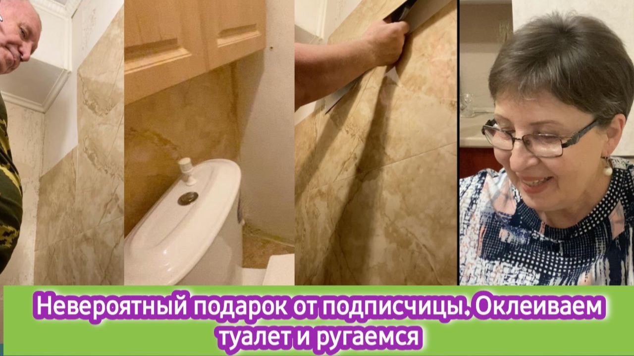 Невероятный подарок от подписчицы. Оклеиваем туалет и ругаемся