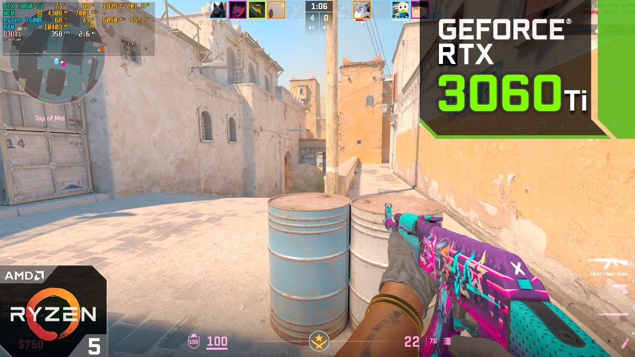 Counter-strike 2 : RTX 3060 Ti + Ryzen 7500F : 1080p