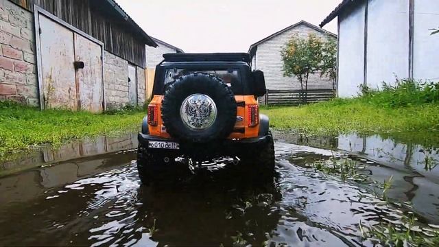Покатушки по лужам возле дома на радиоуправляемом Форд Бронко