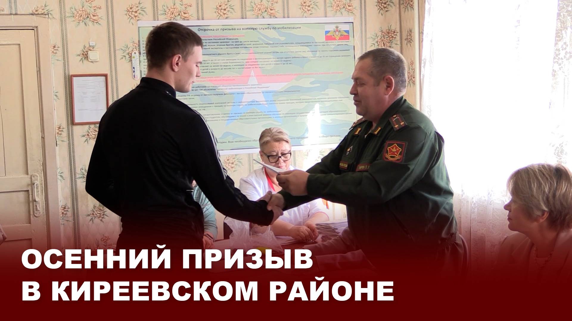 1 октября в России стартовал осенний призыв на военную службу. Соответствующий указ подписал Президент РФ Владимир Путин. Согласно документу, осенний призыв продлится до 31 декабря, в ходе него на службу отправится 133 тысячи россиян. В Киреевском военном комиссариате также начала работу призывная комиссия.