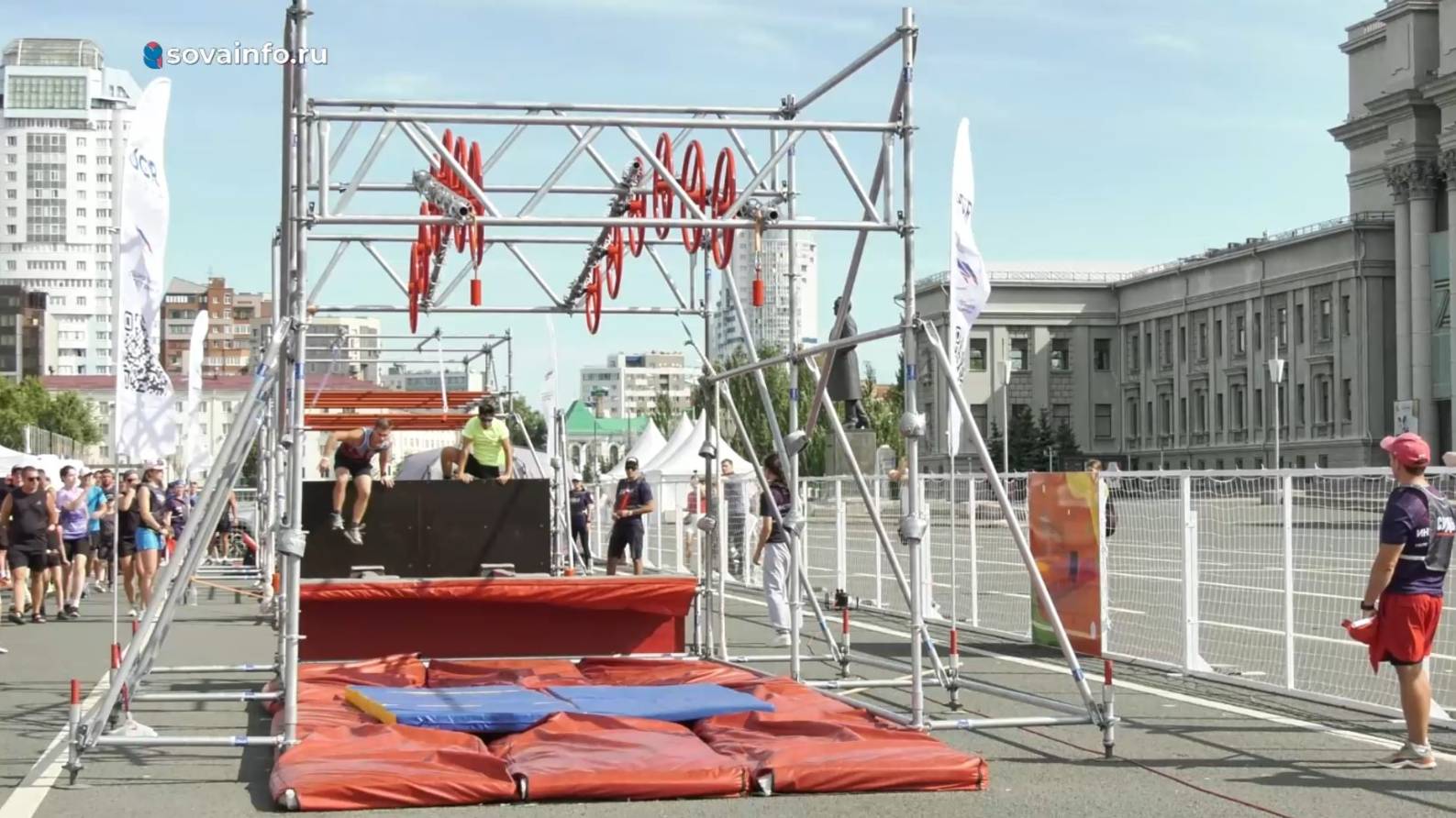 На трассе - что развернута этим летом на площади Куйбышева - собрались атлеты со всего Приволжского федерального округа. Спортсмены преодолели 11 испытаний: рукоходы, гимнастические кольца, турники, барьеры высотой с человека, балансировочные бревна и рампу.