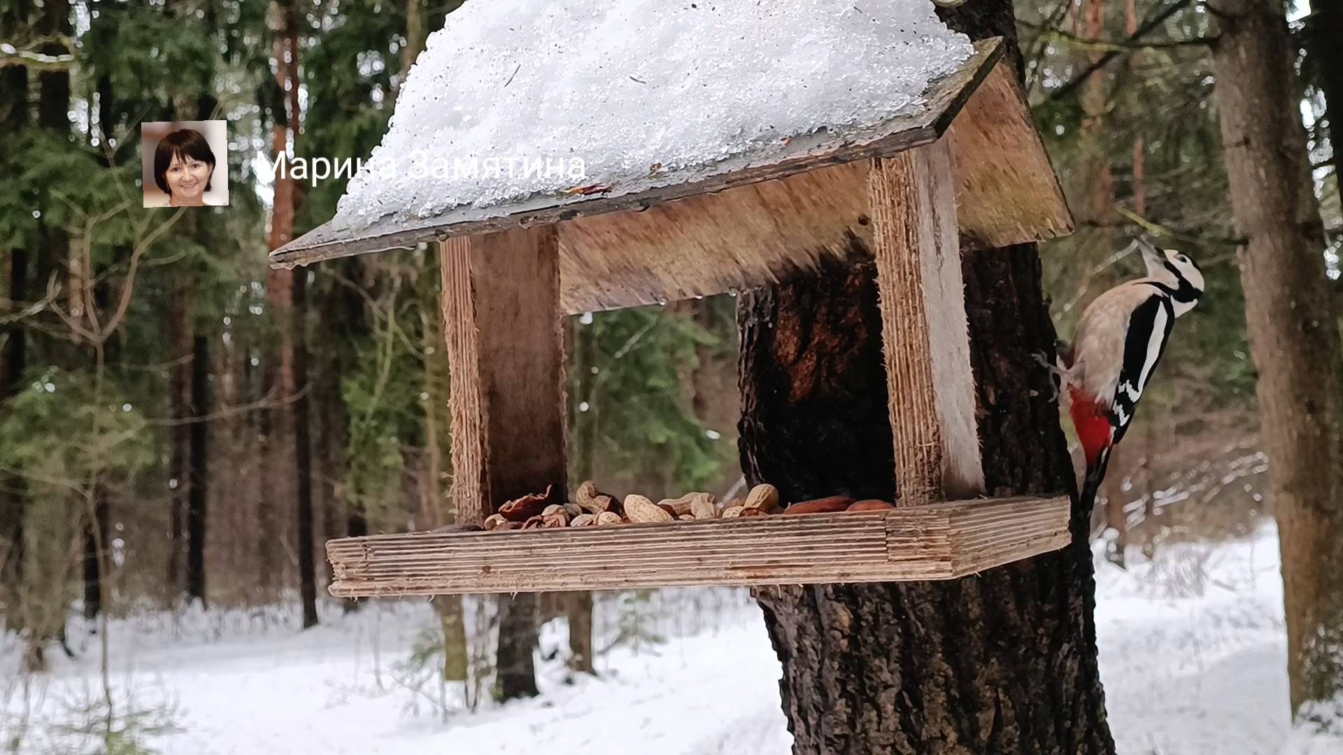 Релакс в лесу. Птиц у кормушки зимой.
