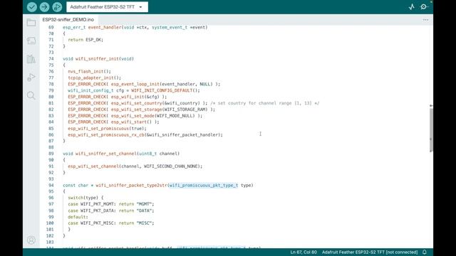 Sniff..sniff..what's that I smell?...WiFi traffic! I will show three different sketches on my ESP32 that sniff WiFi traffic and display it! Pretty sweet... My Github repositories: https://github.com/bdash9/ESP32-AP-Beacon-sniffer https://github.com/bdash9/ESP32-packet-sniffer-tft-display https://github.com/bdash9/ESP32-PCAP-sniffer The code I based my projects on: https://github.com/spacehuhn/ArduinoPcap/tree/master/extras https://github.com/michelep/ESP32_BeaconSniffer I am using the Adafruit ESP32-S2 TFT feather: https://www.adafruit.com/product/5300