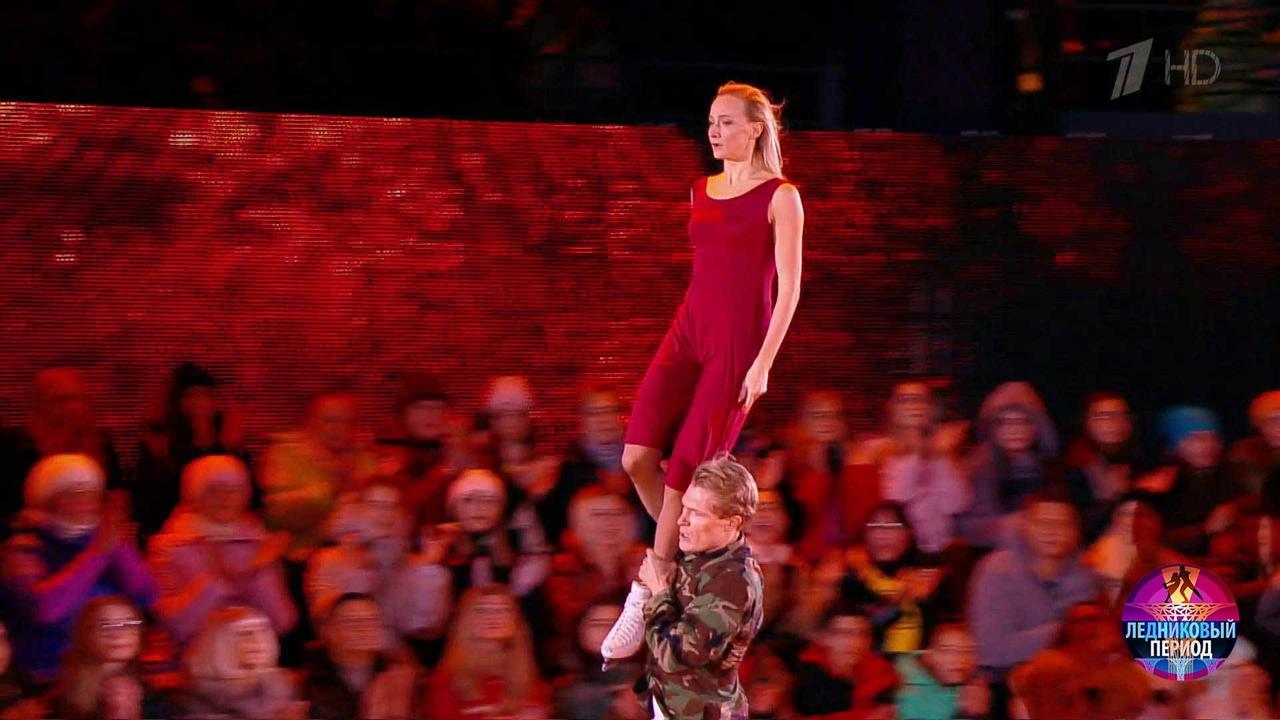 На льду — актер театра и кино Кирилл Зайцев и чемпионка мира и Европы Оксана Домнина. Пара танцует под песню группы «Би-2» «Полковнику никто не пишет».