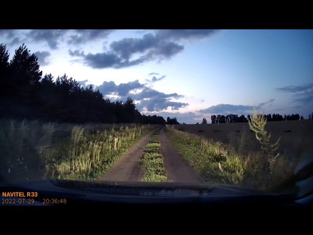Вечерний тест видеорегистратора Navitel R33. Кабаны перебегают полевую дорогу!
