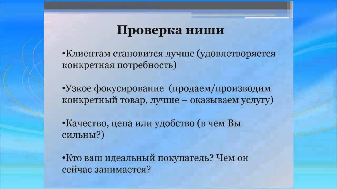 Какую нишу выбрать для начала своего бизнеса? Чем заняться производством товаров или оказанием услуг? Даны критерии проверки выбранной бизнес-ниши. Больше информации для начинающих предпринимателей на сайте http://svetlanaignatovich.com/