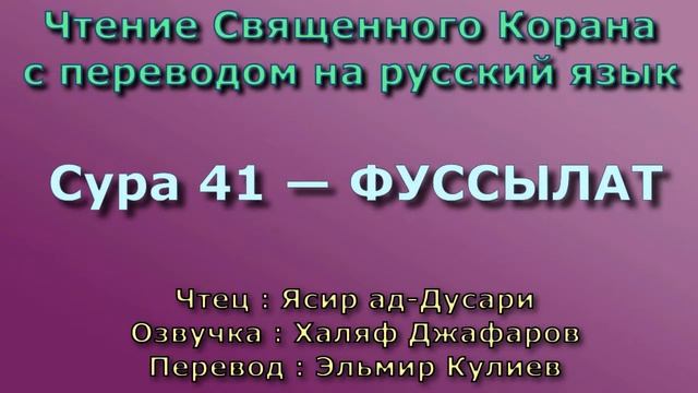 Чтение^Озвучка - Корана Чтец: Ясир ад-Дусари Озвучка: Халяф Джафаров Перевод: Эльмир Кулиев Источник YouTube канал: " Священный Коран "