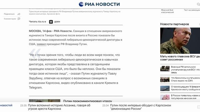Путин_ санкции против Карлсона показали бы истинное лицо диктатуры в США