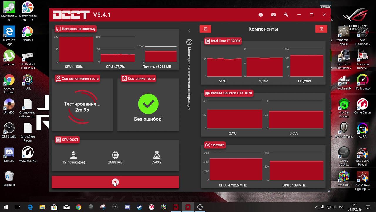 Тест системы программой ОССТ с одним радиатором