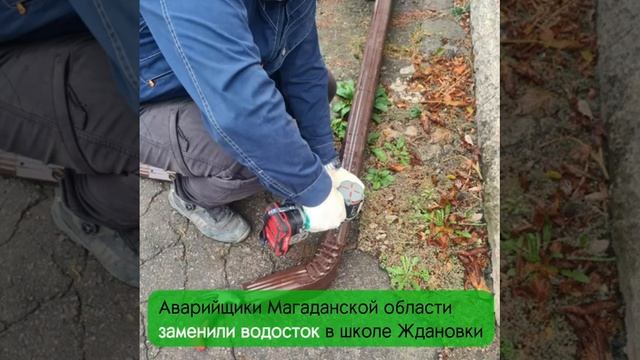 Аварийщики Магаданской области заменили водосток в школе Ждановки