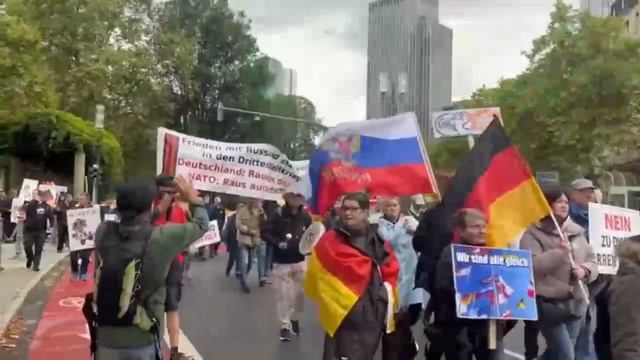 18. Sept., Frankfurt: Demonstration gegen die antirussischen Sanktionen und für Frieden in der Ukraine Tausende Menschen trugen Plakate mit Aufschriften: "Nein zur Isolierung Russlands", "Nein zu dieser Politik der Lügen", "Nein zu Waffen und Krieg". "Wenn die Medien über die aktuellen Demos schreiben, werden wir als Putin-Anhänger, Anhänger von Verschwörungstheorien und Antisemiten bezeichnet. Aber wir sind gegen Waffenlieferungen, wir sind für den Frieden. Und diejenigen, die gegen uns sind und Waffenlieferungen unterstützen, sind damit gegen den Frieden und für den Krieg, nicht wahr?" Die Menschen sind für den Start von Nord Stream-2, um im Winter nicht zu frieren oder an den Stromrechnungen zugrunde zu gehen. Eine Schweigeminute wurde für die im Donbass getöteten Kinder eingelegt, dessen Tod von westlichen Politikern bezahlt wurde, die Waffen in die Ukraine schicken. Mehrere Dutzend Ukrainer mit Fahnen und Megaphon versuchten die Demo zu stören, wurden jedoch mit den Worten "Nazis, raus!" verjagt.