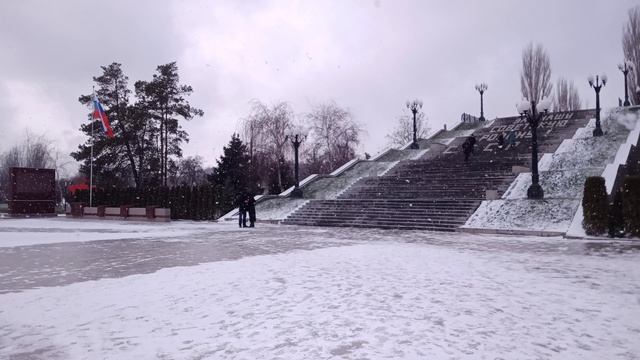 Снегопад у Мамаева кургана. Конец декабря 2025