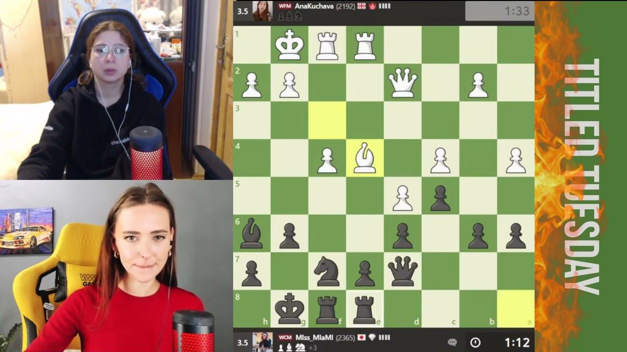 Titled Tuesday 02/04/2024 WFMAnaKuchava Woman FIDE Master (Женский Мастер ФИДЕ) WFM Ana Kuchava Channel (Канал): https://www.twitch.tv/wfmanakuchava MiaMi Chess Женский Кандидат в Мастера WCM Майя Порожняк Канал: https://www.youtube.com/channel/UCB_TyAKDt92mVlmIQsodZIg @MiaMiChess Поддержка канала Николая Дубовика: https://www.donationalerts.com/r/nikoladubovik #chess #шахматы #chesscom #lichess #schach #xadrez #szachy #échecs #scacchi #棋牌 #شطرنج #ajedrez #alexgelman #николосик #ironcat #ironkatze #городскойдровосек#московскийдровосек #коляф4 #коляf4 #защитадубовика #контргамбитдубовика #шахматнаянаркомания #ниднябезчесса #накрутилнасвоюголову #тяпнул #гельманстайл #радостныешахматы #неолимпийскийчемпион #happychess