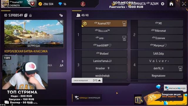 ▪ Донат в Free Fire - https://t.me/m4gaff_bot ▪ Донат стримеру тут - https://www.donationalerts.com/r/azamm05 ▪ Телеграмм https://t.me/azammiff ▪ Пиар 500р только если есть стрим за актив не отвечаю ▪ Я Вконтакте - https://vk.com/azammteam ▪ Модерка на стриме 5К ▪ В др 400р ▪ Проверка 400р (пк) не проверяю