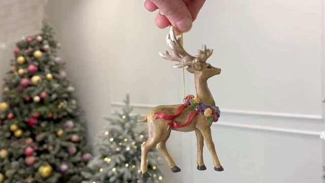 Ёлочная игрушка ОЛЕНЬ РОББИ С ВЕНКОМ ИЗ ФРУКТОВ, полистоун, 13 см, E0926-1
