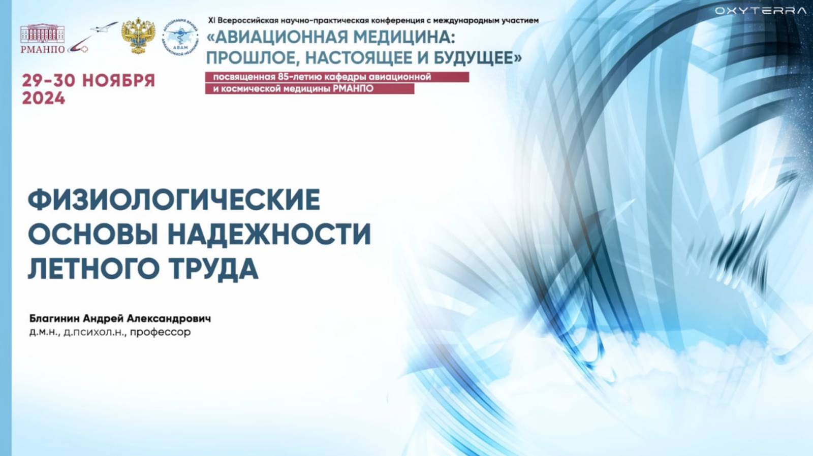В рамках конференции, посвященной 85-летию кафедры авиационной и космической медицины, РМАНПО (29–30.11.24), д.м.н., профессора А. А. Благинина. представил доклад на тему: «Физиологические основы надежности летного труда» 🛫 🗣️ О спикере: Благинин, Андрей Александрович — российский ученый-медик, специалист по авиационной и космической медицине. Доктор медицинских и психологических наук, профессор, полковник медицинской службы (1999). Заведующий кафедрой Военно-медицинской академии им. С. М. Кирова, профессор Ленинградского государственного областного университета им. А. С. Пушкина (с 2003) и Нижневартовского государственного университета. Заслуженный деятель науки Российской Федерации (2017).