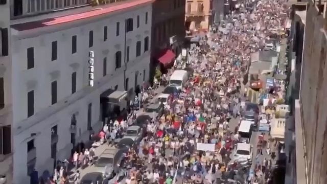 🔥🔥🔥 В Риме люди массово вышли на улицы против плана ЕС по росту военных расходов.