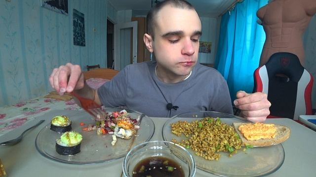 МУКБАНГ ГРЕЧКА / РОЛЛЫ ЗАПЕЧЕННЫЕ / САЛАТ ОВОЩНОЙ / БУТЕРБРОДЫ / ОБЖОР / EATING Mukbang ASMR АСМР