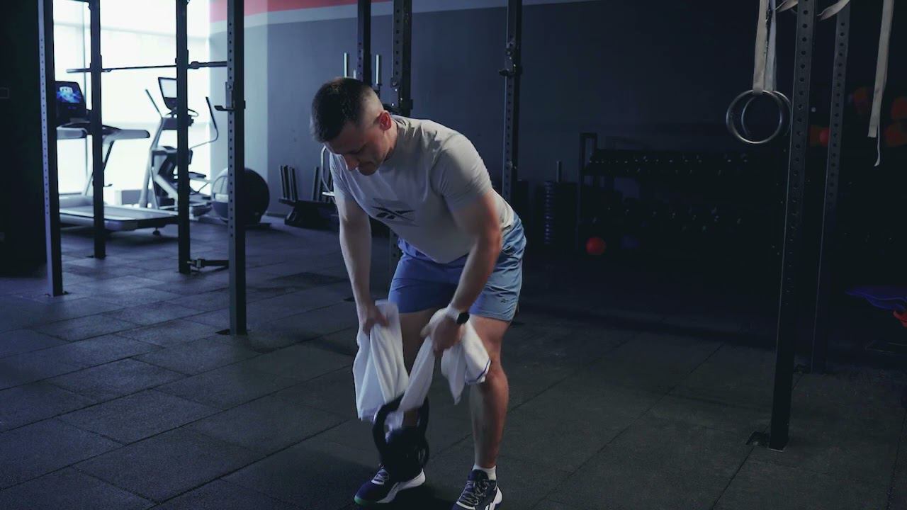 Тяга гири на полотенце/KB towel bent over pull