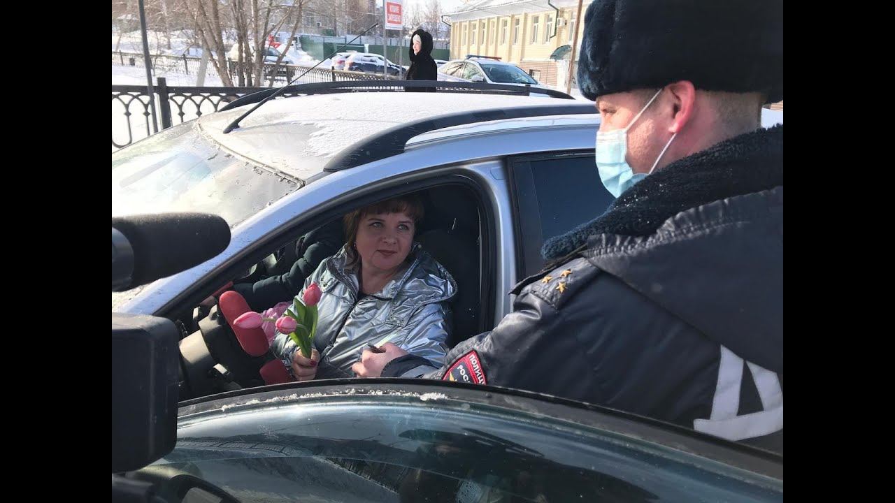 Праздничный рейд сотрудники ГИБДД поздравили автоледи