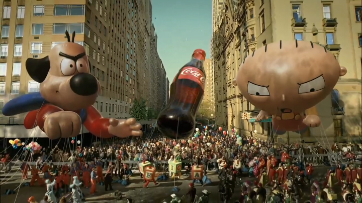 Устоять перед бутылочкой Coca-Cola не могут даже огромные надувные куклы.