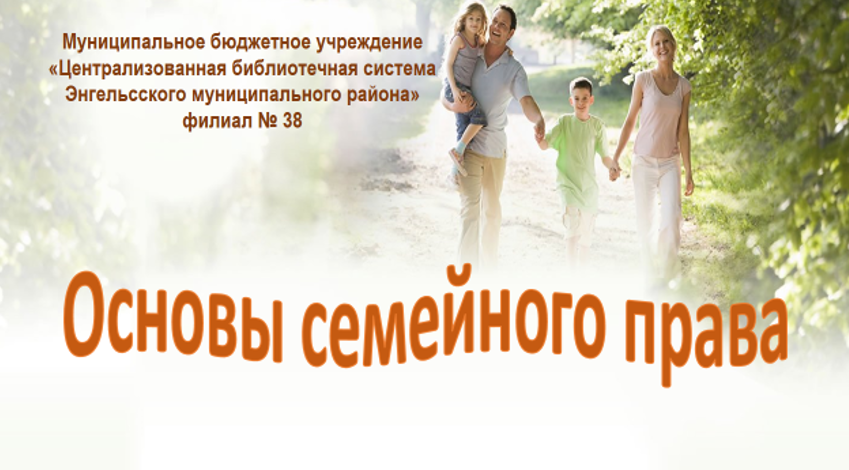 Сотрудники филиала №38 подготовили видеопрезентацию «Основы семейного права». В ней рассказывается об основных целях семейного права – укрепление семейных отношений; о принципах и нормах семейного права, закрепленных семейным законодательством.