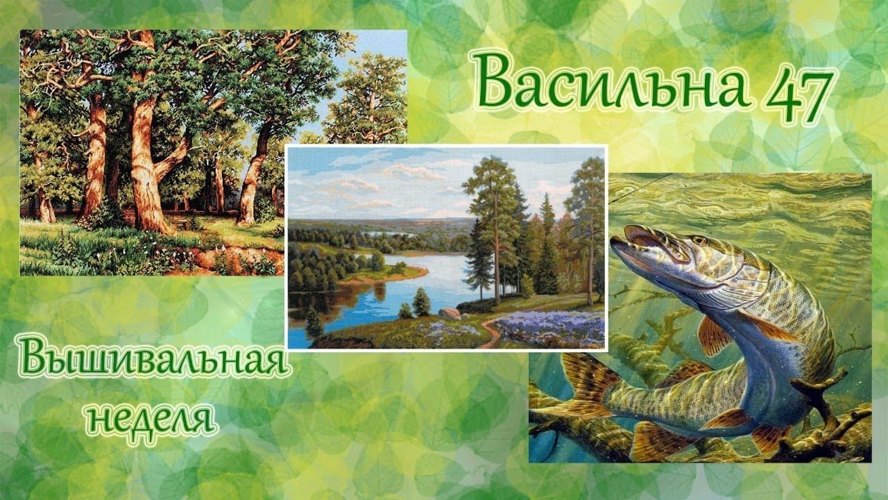 Вышивка крестом. Химера "щука", Нитекс " над рекой", дубовая роща, жар-птица новогодние шары.