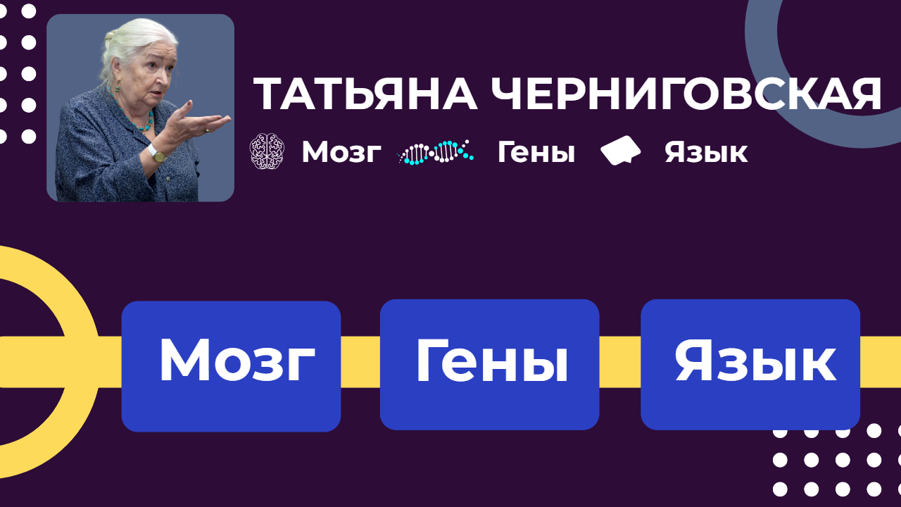 Лектор: Черниговская Татьяна Владимировна, доктор биологических наук, доктор филологических наук, профессор, член-корреспондент РАО. Директор Института когнитивных исследований, заведующая кафедрой проблем конвергенции естественных и гуманитарных наук факультета свободных искусств и наук, профессор кафедры общего языкознания филологического факультета СПбГУ. Член Совета при Президенте РФ по науке и образованию. В своей лекции Татьяна Владимировна рассказывает о том, что современное образование конвергентно и мультидисцплинарно, и людей нужно учить мета-навыкам: как отбирать информацию, как тренировать память и внимание, как переключаться с одной специальности на другую. Будущему нужны люди, способные к нетривиальным решениям и знакомые с большим спектром наук и компетенций. Мозг | Гены | Язык | Татьяна Черниговская. ТАЙМИНГ: 00:00 Ген FOXP2 и его роль в языке • Ген FOXP2 был объявлен геном языка, но на самом деле он не обеспечивает его развитие. • Он отвечает за рост нейронной сети и правильную работу мозга, связанную с коммуникацией. 06:59 Лингвистика и мозг • Современная лингвистика является одной из самых сложных наук, основанной на формулах и алгоритмах. • Язык отличается от других коммуникационных систем своей цифровой организацией и конечным числом элементов. 10:44 Мозг и память • Мозг работает как "бомж", постоянно меняя свое местоположение и храня информацию в разных местах. • Сеченов предсказал, что мозгу все равно, реальны ли события или нет, и он обрабатывает информацию независимо от источника. 14:59 Изучение человеческого языка • Татьяна черниговская обсуждает, как человеческий язык является сложным и многозначным, зависящим от контекста и конвенциональным. • Язык изучается с помощью функциональной магнитно-резонансной томографии, которая показывает, что мозг работает на разных уровнях. 23:16 Мозг и информация • Мозг может вместить огромное количество информации, но его работа может быть перегружена. • Мозг работает с аналоговыми процедурами, которые не могут быть полностью смоделированы компьютерами. 25:50 Мозг и образование • Мозг учится по своим принципам, которые отличаются от тех, которые преподаются в педагогических вузах. • Работа ученых заключается в том, чтобы понять эти принципы и использовать их в образовании. 27:33 Подготовка интеллектуальных элит • Подготовка элит, управляющих государствами, требует жесткой дисциплины и высоких требований. • Важно воспитывать и учить людей, которые будут управлять миром. 33:32 Мозг и нейронные сети • Мозг человека имеет сложную структуру и состоит из миллиардов нейронов. • Информация хранится в отдельных нейронах, пучках и узлах. 38:01 Сознание и его изучение • Сознание - это сложное явление, которое нельзя увидеть или найти, но можно увидеть результаты его работы. • Сознание может быть у всех живых существ, но его свойства отличаются у разных видов. • Сознание не может быть изучено полностью, так как оно постоянно меняется и сложно устроено. 41:58 Распределенное сознание • Татьяна Владимировна обсуждает, как много функций в современном мире находятся вне человеческого мозга, например, в телефонах и компьютерах. • Упоминается, что статьи автора находятся в облаках, а кофемолка и мясорубка сами выполняют свои функции. 46:08 Генетическая информация • Обсуждается, как каждый м