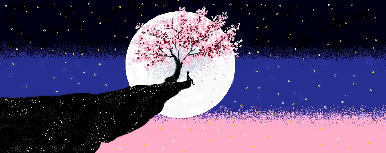 Повторяю картину за Jay lee painting "Вишневый цвет под луной" в Paint
