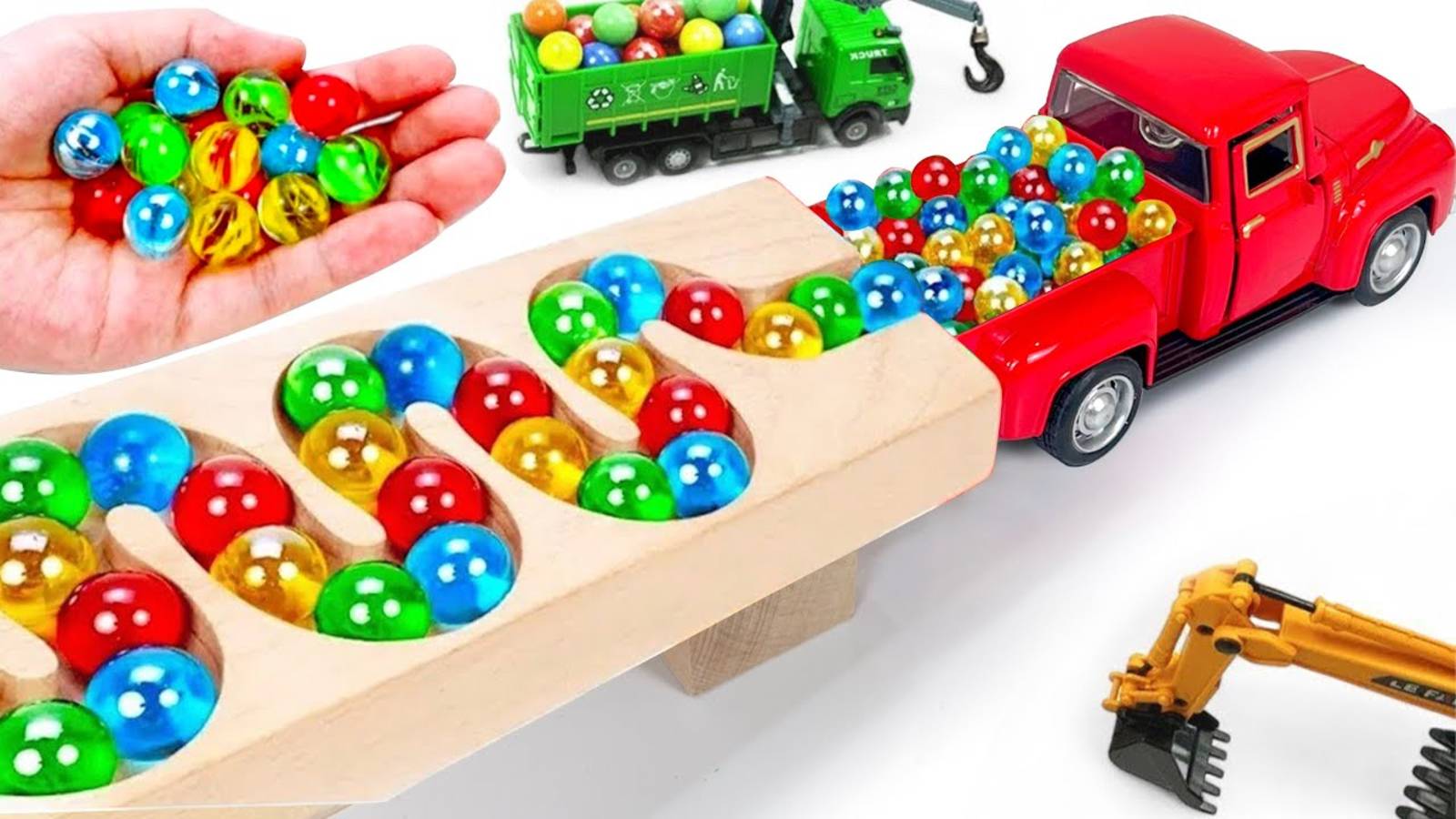 Забег мраморных шариков Склон ☆ Самосвал Экскаватор Скорая помощь Погрузчик Мусоровоз Трактор