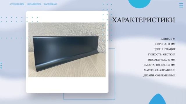 Официальный магазин завода Производителя: https://alyuminievyjplintus.ru/ Купить Плинтус алюминиевый Л-образный Антрацит: https://alyuminievyjplintus.ru/item/plintus-aljuminievij-l-obraznij-antracit-60h11h3000mm Л-образный плинтус из алюминия высотой 60 мм. находит отличное применение при отделке помещений в стиле Premium, Hi-Tech или Минимализм. Так же довольно часто используется в интерьерах автосалонов и бизнес-центров. Плинтус имеет привлекательный дизайн, отличное качество, а в совокупности более привлекательной ценой, по сравнению и зарубежными аналогами. Возможна окраска в различные цвета по RAL В ролике вы увидите: ▶ Плинтус алюминиевый Л-образный Антрацит ▶ Стоимость, скидки и характеристики Цена: 1267 рублей за штуку Тайминг: 00:00 Вступление 00:06 Описание и цена 00:14 Характеристики 00:20 Дополнительная информация (Доставка, Оплата, Скидки, Обмен, Возврат) 00:30 Магазин завода производителя Характеристики: ДЛИНА: 3 М ШИРИНА: 11 ММ ЦВЕТ: АНТРАЦИТ ГИБКОСТЬ: ЖЕСТКИЙ ВЫСОТА: 40,60, 80 ММ ВЫСОТА: 100, 120, 150 ММ МАТЕРИАЛ: АЛЮМИНИЙ ДИЗАЙН: СОВРЕМЕННЫЙ Зазор между плинтусом и стеной 1 мм, позволяет лучше распределиться клею. Гнется плинтус ровнее, если нужно обвить колонну. Доступны цвета: - Серебро матовый - Золото матовый - Шампань матовый - Бронза матовый - Черный матовый Возможна окраска в различные цвета по RAL Все анодированные цвета (кроме серебра) - под заказ. Отличительной особенностью данного плинтуса является наличие дополнительного упора, что обеспечивает простоту запиливания алюминиевого плинтуса под углом в 45 градусов, поэтому большая часть покупателей обходится без комплектующих. Плинтус поставляется в цвете анодированное серебро, но так же, по желанию заказчика может быть задекорирован в другие цвета, в том числе эксклюзивные - Хром, Текстура кожи, Золото, а наличие дополнительного упора у плинтуса, позволяет без труда осуществлять его запил под 45 градусов и производить монтаж плинтуса без комплектующих. Для всех плинтусов с анодировкой есть комплектующие из ПВХ, они дешевле по стоимости, есть комплектующие из алюминия, их стоимость приведена в таблице ниже. Так же, для простых цветов комплектующие ПВХ красятся, но оттенок может отличаться, т.к. красятся другими красками и по другой технологии. Интересные ролики про плинтус: Плинтус алюминиевый 80х10 черный матовый https://youtu.be/oHVCEHSvDDU?si=-nQi4ewE5WfC9qJC Плинтус алюминиевый 60х11 светлая бронза https://youtu.be/ihlQM3PwBrM?si=VpfARSQvz4sh0oqf Плинтус алюминиевый 60х11 светлая бронза https://youtu.be/rhH4Uc98YVw?si=99Vh79yKL0WjI38Z Подписывайтесь на наш канал, следите за новыми полезными роликами, пишите комментарии и приятного просмотра! Сайт: https://alyuminievyjplintus.ru/ #плинтус #плинтусполоса #алюминиевыйплинтус #напольныйплинтус