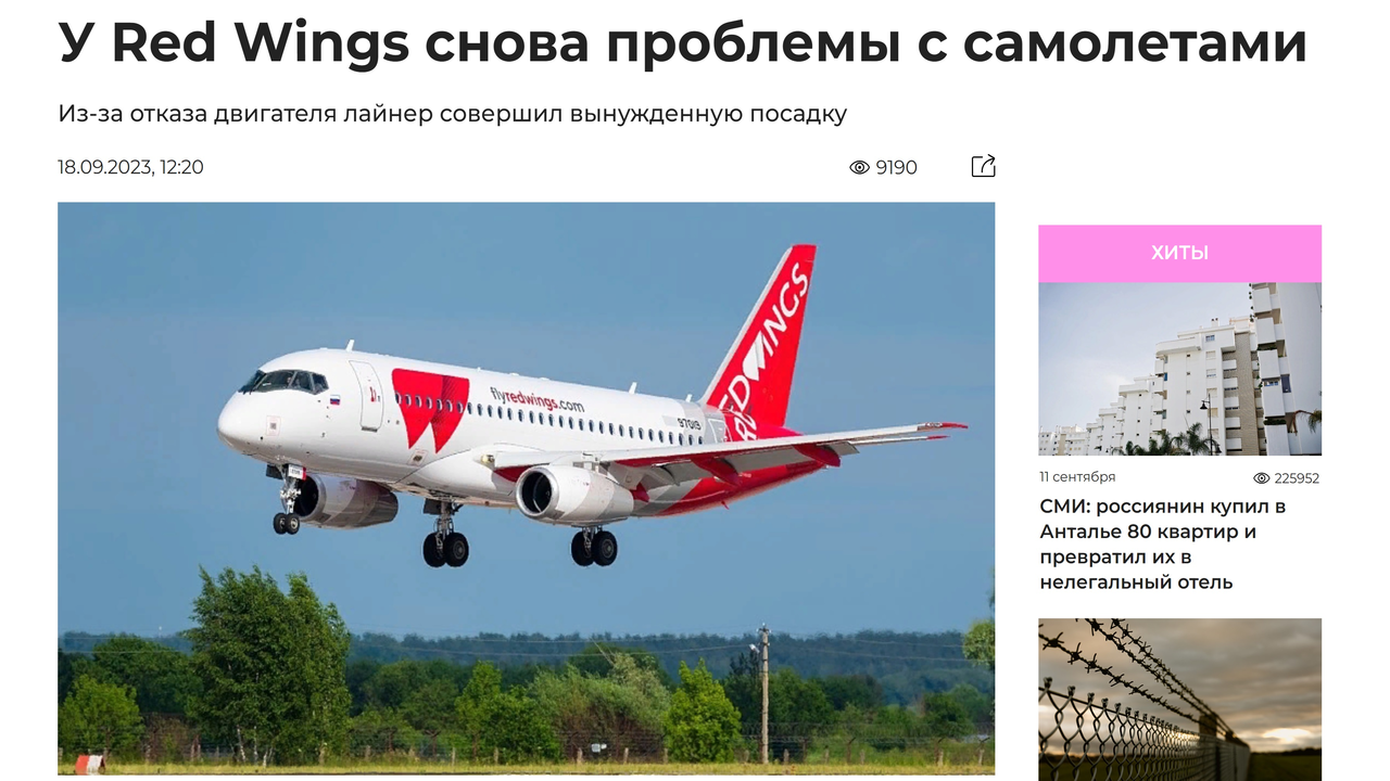 Новости туризма 18/09/2023 У Red Wings снова проблемы с самолетами #туризм"