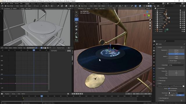 117. Animating the Rotating Record Player in BLENDER Victorian Room