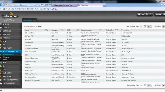 Cyberoam: работа с приложениями