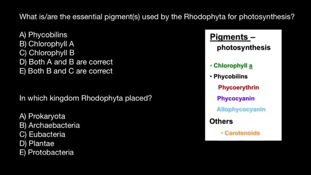 Rhodophyta | Kingdoms | Photosynthetic pigments