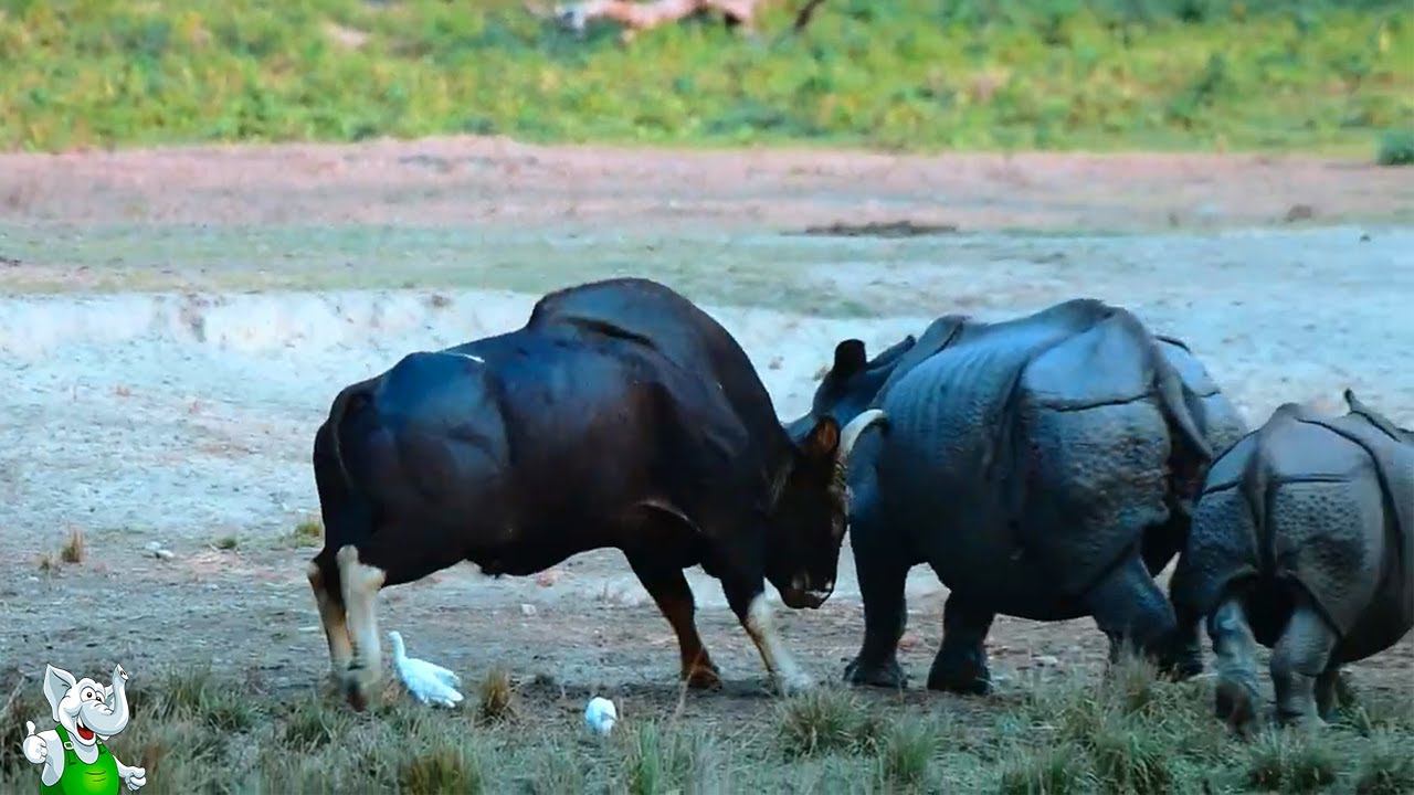 Носороги Не Ожидали Нападения Быка / Случаи с Животными Снятые На Камеру