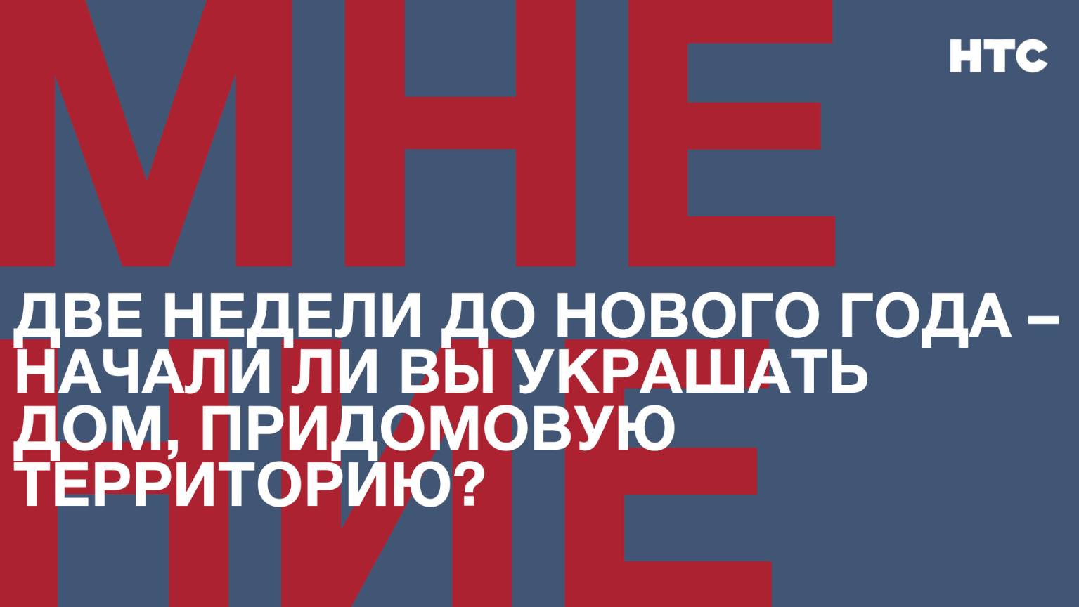 «Независимое телевидение Севастополя» продолжает рубрику «Мнение». Ежедневно в эфире нашего телеканала – ответы севастопольцев и гостей города на вопросы, которые интересны, актуальны и злободневны. Корреспонденты «НТС» работают на улицах города и предоставляют гражданам возможность высказать своё мнение по «Вопросу дня». Две недели осталось до Нового года. Сегодня мы спросили севастопольцев, начали ли они украшать дом, придомовую территорию? Какой вопрос задать, решают не только журналисты «НТС». Вы можете предложить свой вопрос на общегородские темы, позвонив в редакцию «Независимого телевидения Севастополя» по телефону: 59-00-60 или мобильному: +7 (978) 900-31-31. Подписывайтесь на наш Телеграм-канал: https://t.me/nts_novosti Смотрите новости Севастополя и Крыма на сайте НТС: http://nts-tv.com В нашей группе "ВКонтакте": https://vk.com/ntssevastopol На странице в "Одноклассниках": https://ok.ru/ntssevastopol