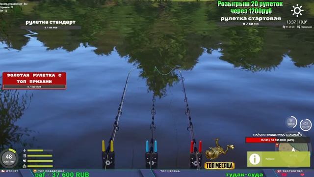 Поддержка донатом https://new.donatepay.ru/@1032463 Альтернативный донат https://www.donationalerts.com/r/kalyamba11 5536913964533059 карта Тинькоф Если стрим лагает,смотри стрим на трово https://trovo.live/s/Kalyamba_na_Ribalke Мой ВК - https://vk.com/kalyantv НИК в игре kalyan11 НАШ ДИСКОРД СЕРВЕР https://discord.gg/pFsEn9e9 Заказ водоема на 1 час - 500р ( весь стрим 2500р ) Модерка на канале 1300р ( каждая следующая на 100р больше) Озвучка доната на 40р,50р,100р,200р,300р,500р,1000р ✅Призы в рулетке "ЗОЛОТАЯ" ✔ ЗОЛОТО ✔ ПРЕМ ✔ КАТУШКИ ЮБИЛЕЙНАЯ БОРЕЛИКА, ВЕНГИ, ТАЙГА, СИЛЬВЕР 80, И другие ✔ ПАЛКИ ПИЛКЕРНАЯ, ДОНКА МОРСКИЕ, ✔ РОД ПОД, СТУЛЬЯ ✅Призы в рулетке СТАНДАРТ : ✔ катушкИ ЮБИЛЕЙНАЯ БОРЕЛИКА, ВЕНГИ, ТАЙГА, СИЛЬВЕР 80, И другие ✔ катушки 60 для медного ( ЭВИИ, НАТОРЫ, ГОЛДА, и тд) ✔ ПИЛКЕРНОЕ УДИЛИЩЕ КОРОЛЕВА ОКЕАНА ✔ Морское Донное удилище ✔ прем ( 3, 7, 30 дней) ✔ золото ( 1, 3, 5, 10, 20 ,50) ✔ билет на море ( 1, 3, 5 дней) ✔ голд наживка и др. ✅Призы в рулетке "СТАРТОВАЯ" ✔ катушка "silver80" ✔ катушка "БЕЛЫЙ КАЛИБР" ✔ катушка "Черный калибр" ✔ катушка "Протон" ✔ катушка "Нарга 6000" ✔ Набор Фидерист и спинингист ✔ Карповик Фортуна ✔ фидерные удилища ✔ прем, золото, алкашка, наживки и тд P.s Рулетка это не казино, а награда за поддержку стримера. Вечный ТОП ПОДДЕРЖКИ (11.05.2024) 1. Dimon_pokemonchik 119 784 2. Interceptor 75 508 3. Skreb79 71 261 4. une personne 68 619 5. Нарвал77 31 550