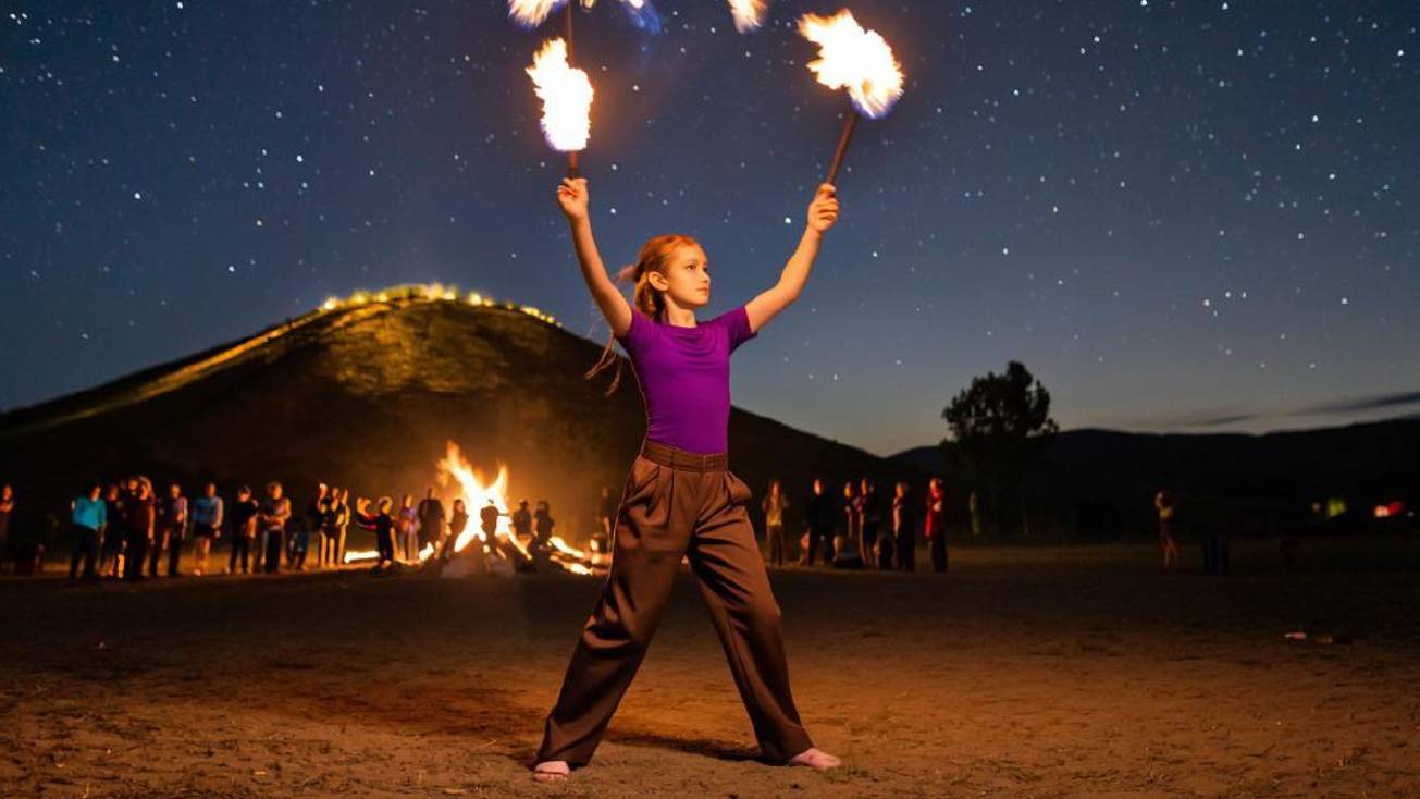 Мастерское исполнение файер-шоу! Видео снято на Аркаиме!