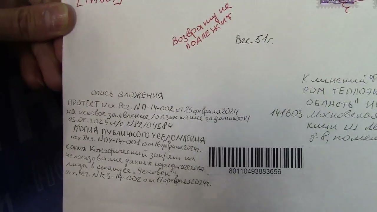 Протоколирование письма.ПРОТЕСТ №П-14-002 от 23.02.24 на Исковое Заявления "ГАЗПРОМ ТЕПЛОЭНЕРГО МО"