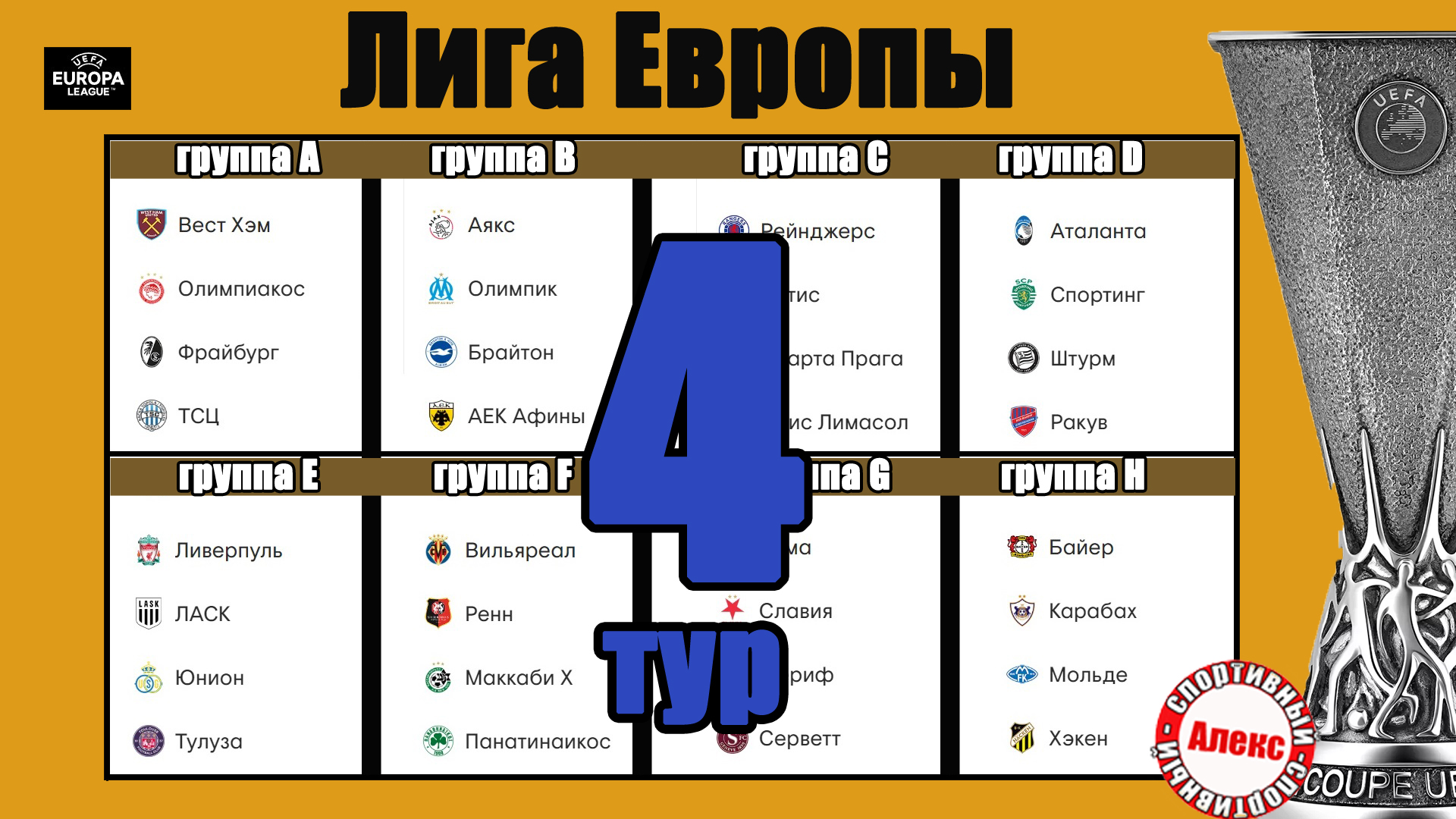 Лига Европы. 4 тур. Таблицы. Результаты. Расписание. Кто в 1/8?
