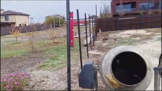 Бетонирую столбы для забора . Работа в полном разгаре .