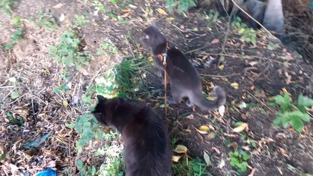 Котики гуляют возле погреба.