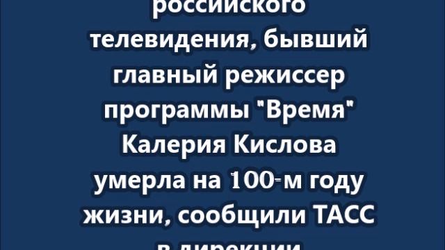 Бывший главный режиссер программы Время Калерия Кислова умерла на 100-м году жизни