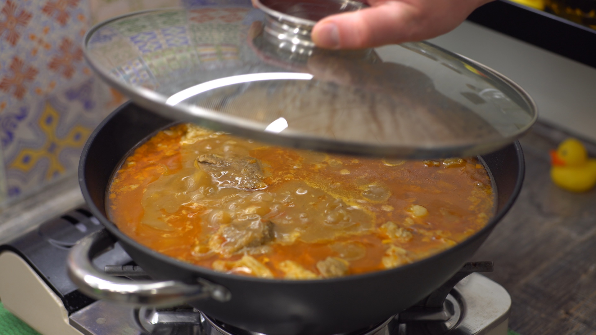 Ингредиенты: Мясо (баранина) - 1,7 кг Вода - 2 л Лук - 300 г Соль - 1 ч л Перец - 1/2 ч л Паприка - 1 ч л Лавровый лист - 2 шт Чеснок - 5-6 долек Помидор - 300 г Мука - 50 г
