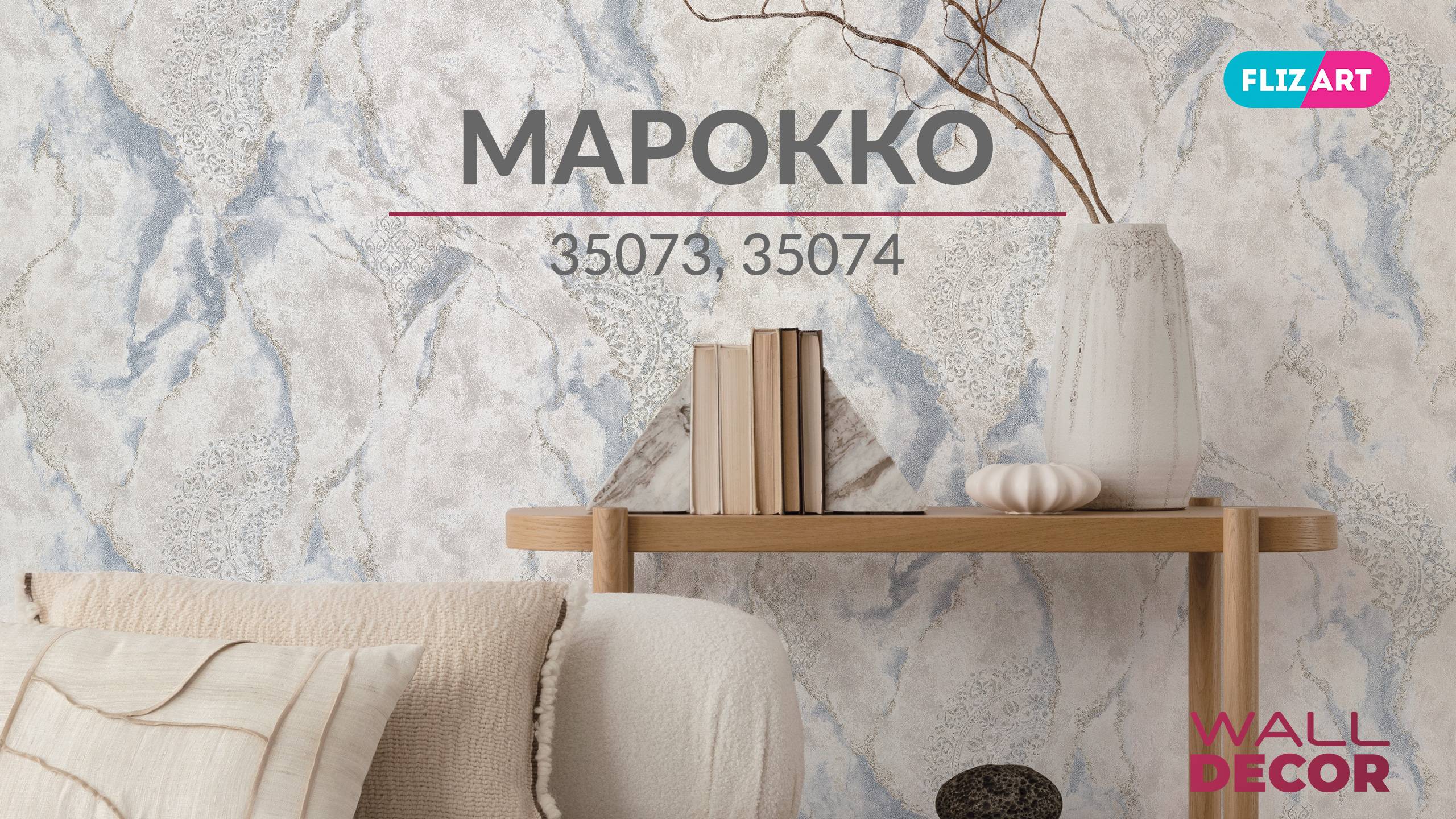 Основной рисунок коллекции «Марокко» – изящная вязь восточного орнамента, вплетённая в срез природного камня. Плавные ритмичные линии создают эффект движения, имитация камня – ощущение прочности и величия. Декорирование золотом, глиттером и металлизированными красками придаёт узору мерцающий блеск, акцентируя внимание на деталях. Компаньон – лёгкая фактура камня, дополняет и раскрывает основной рисунок. Коллекция «Марокко» от Wall Decor – восточная утончённость и нетленная классика. Она гармонично впишется в такие стили интерьера, как арт-деко, неоклассика, а также современные минималистичные и лофт-пространства с элементами эклектики.