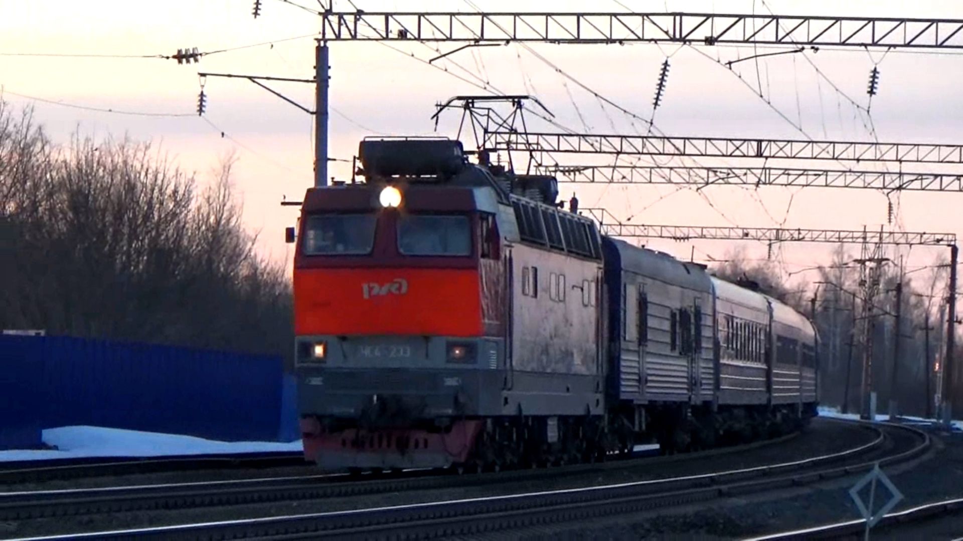 ЧС4т-233 с пассажирским поездом. Прибытие на станцию Вязники