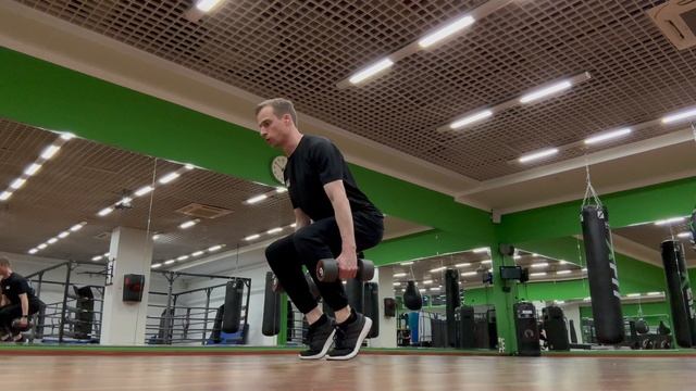 Приседания с подъемом на носки (полупальцы) в седе с гантелями