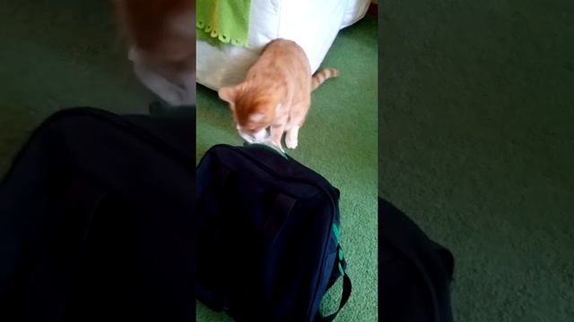 Рыжий - бесстыжий кот ворует носки, прям из сумки :D