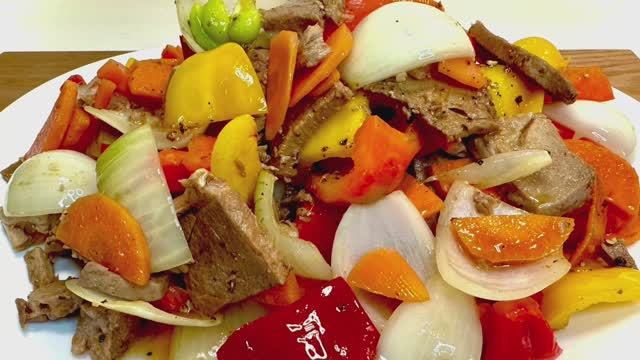 Корейский мясной салат с перцем и морковью!